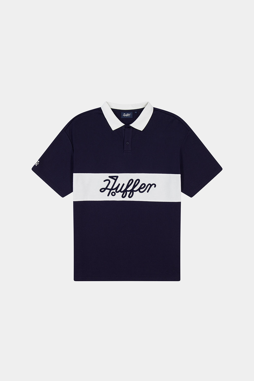 • Here's what you should know: 60% Cotton 40% Polyester Pique, 245gsm, Soft Handfeel, Pique, Boxy streetwear fit, Short sleeve, Rib collar, Button stand and placket, Contrast panel with Huffer branded placement embroidery