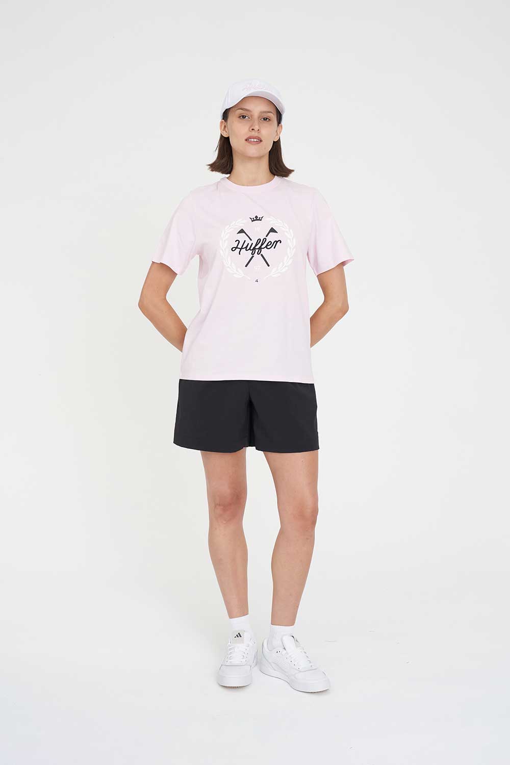 • Here's what you should know: 100% Cotton, 170gsm, 15mm Neck rib, Standard weight jersey, Custom Huffer piece dyed colour, Classic fit, Short sleeve, Huffer branded placement screenprint
