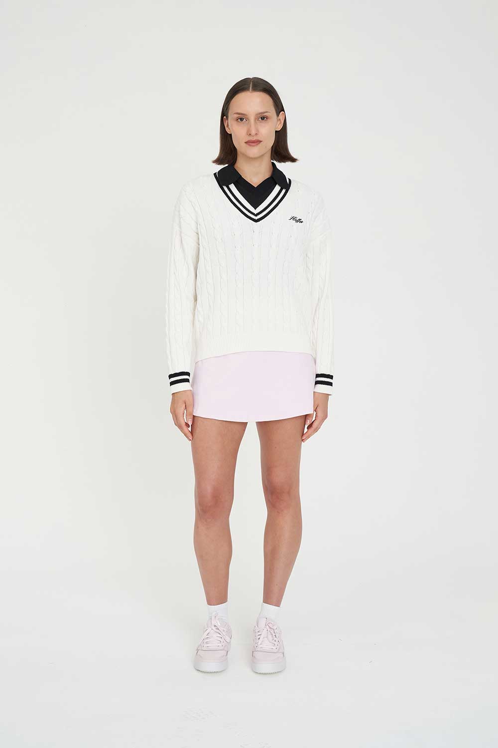 • Here's what you should know: 100% Cotton, Fully fashioned knit, Custom Huffer stripe, Cable knit pattern, Long sleeves, Huffer placement embroidery, Huffer branded gold metal plate